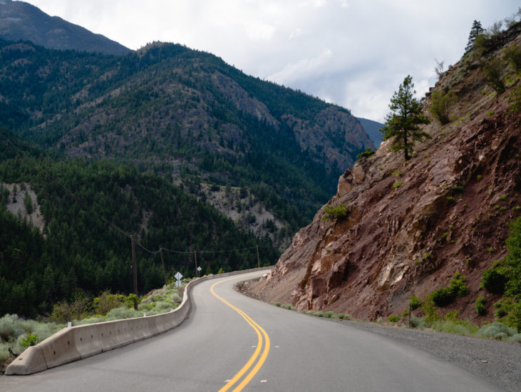 travel highway 12 through towering mountains along the fraser river